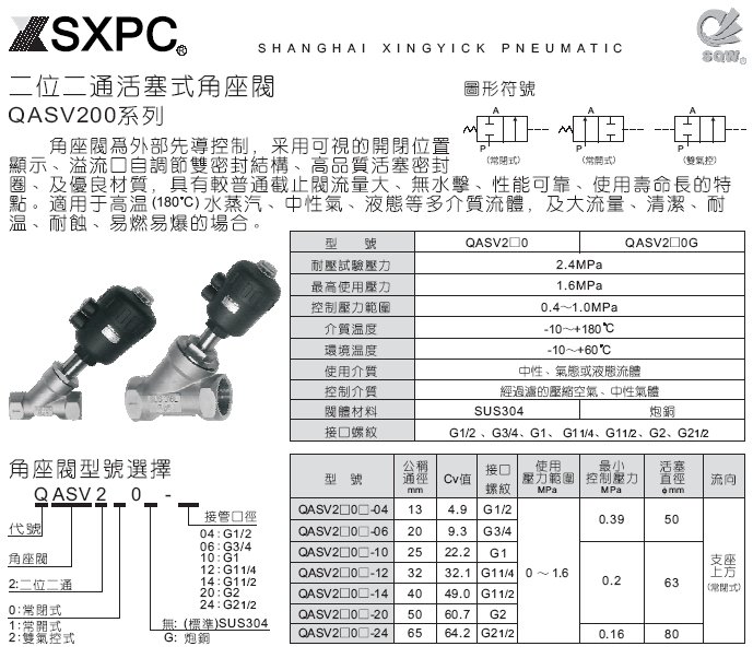 QASV200系列 二位二通角座阀