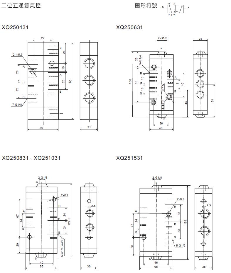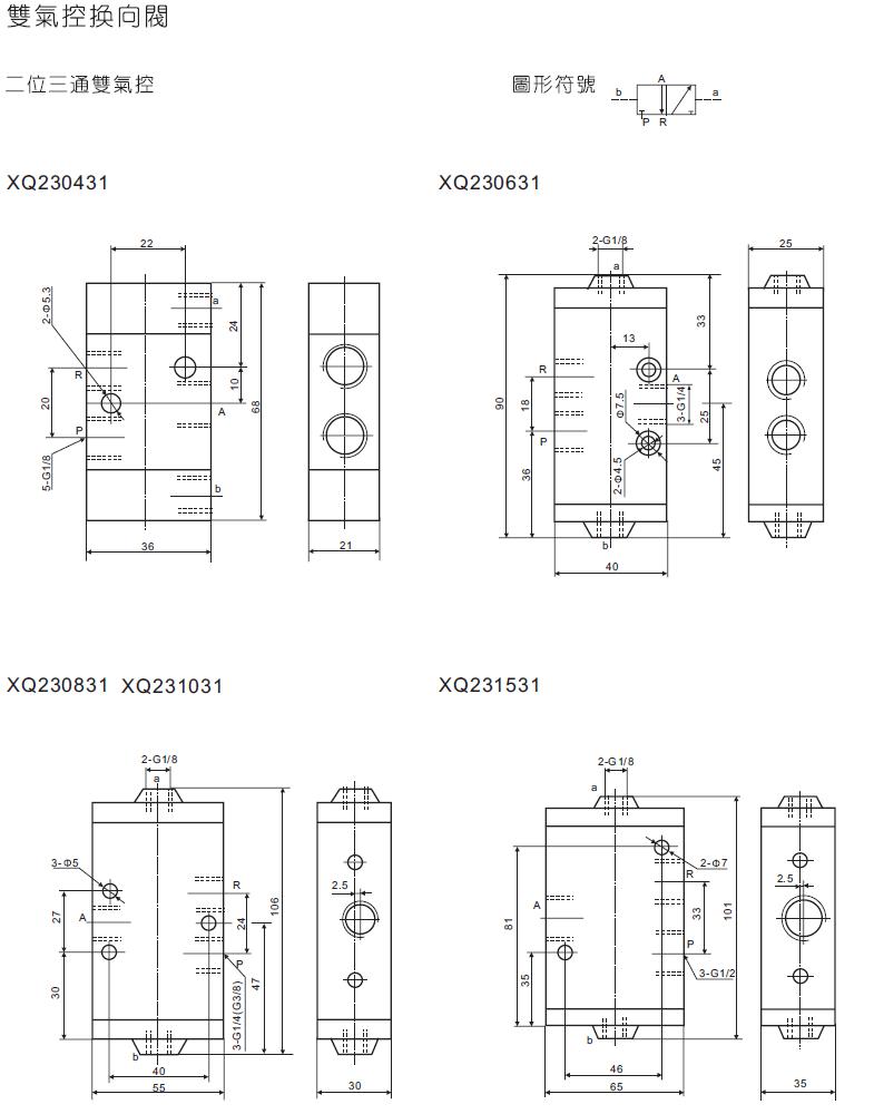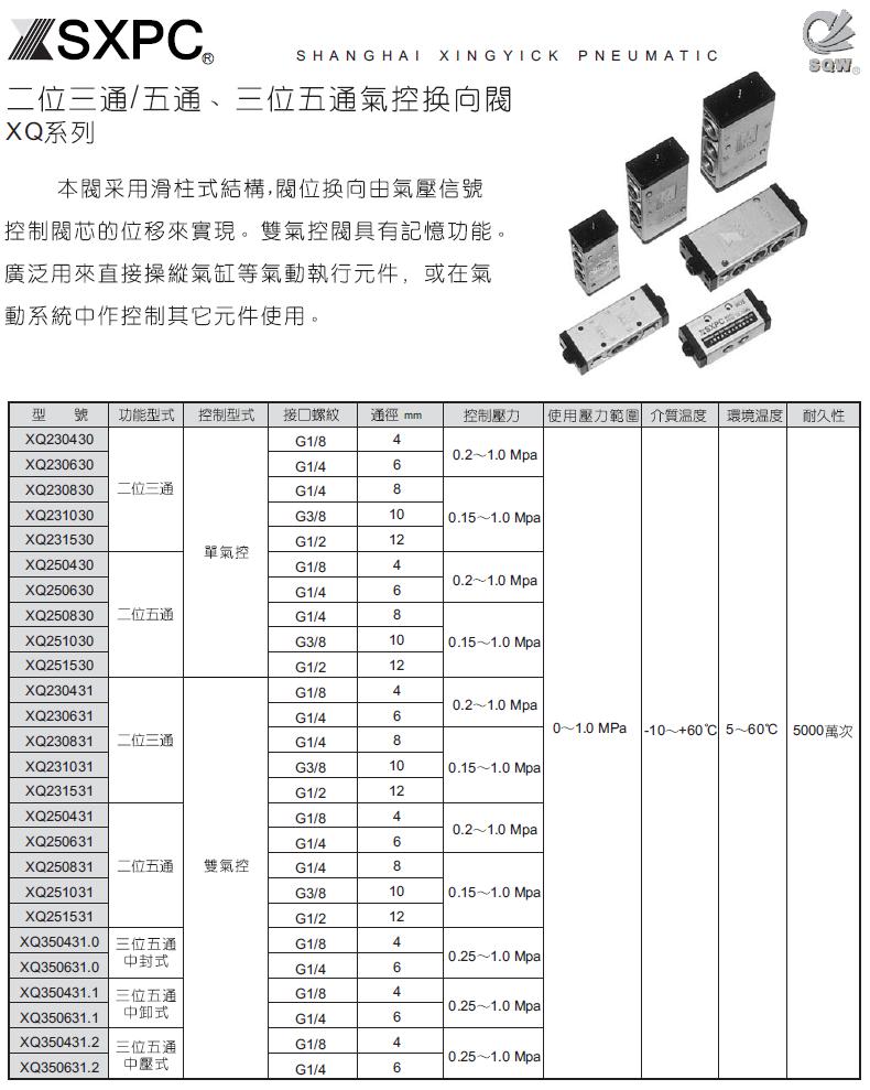XQ系列 二位三通/五通、三位五通气控换向阀