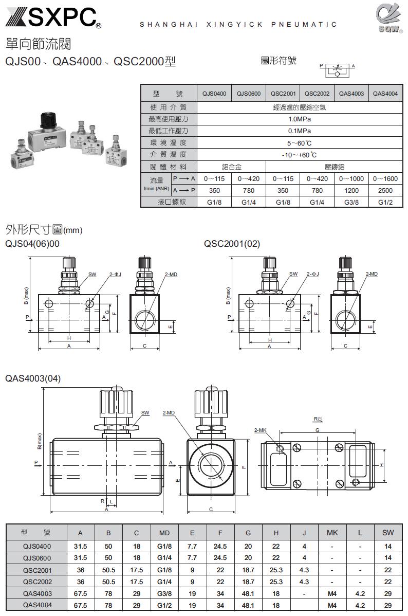 QJS0000、QAS4000、QSC2000型 单向节流阀