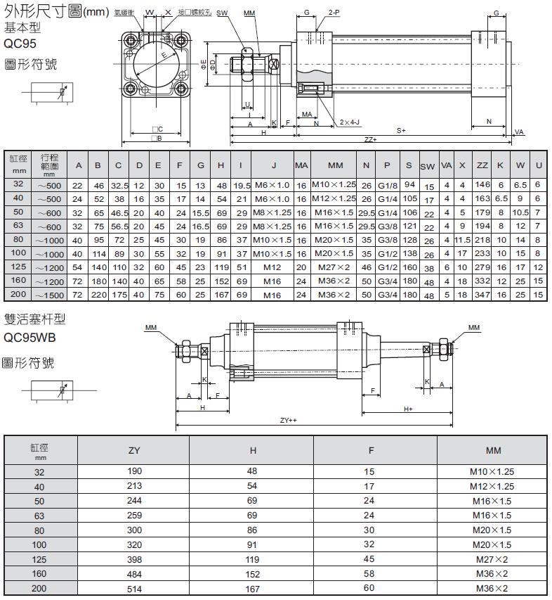 QC95系列 ISO15552标准气缸