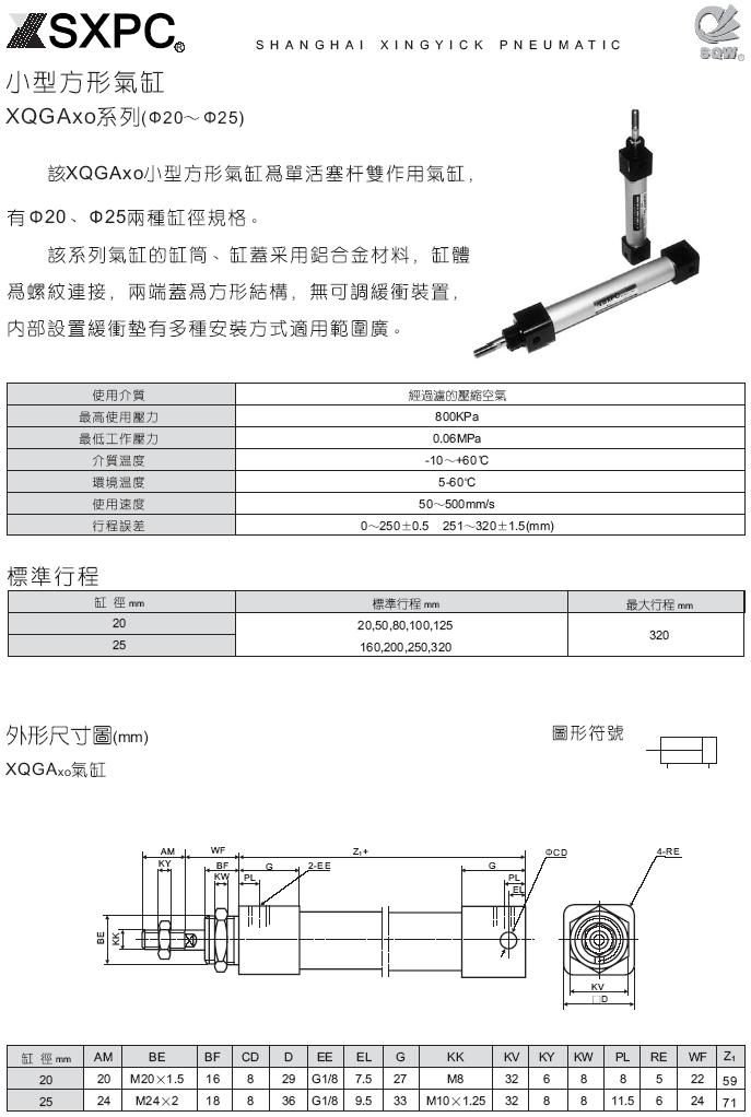 XQGAxo系列 小型方型气缸