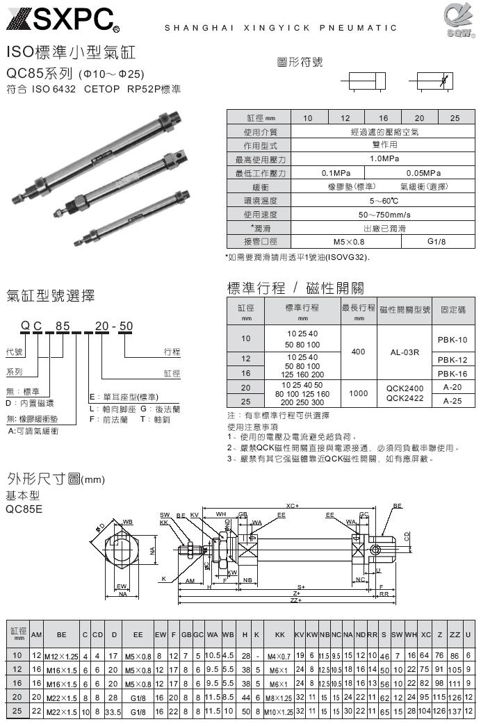QC85系列 ISO6432标准小型气缸