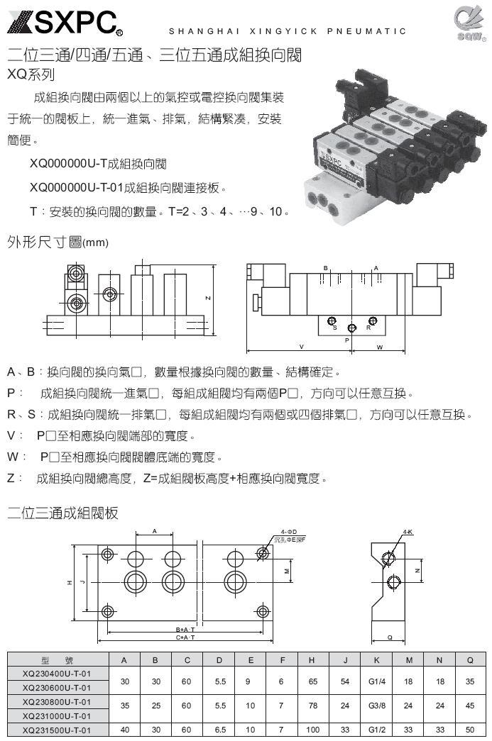 XQ系列 二位/三位三/四/五通成组阀