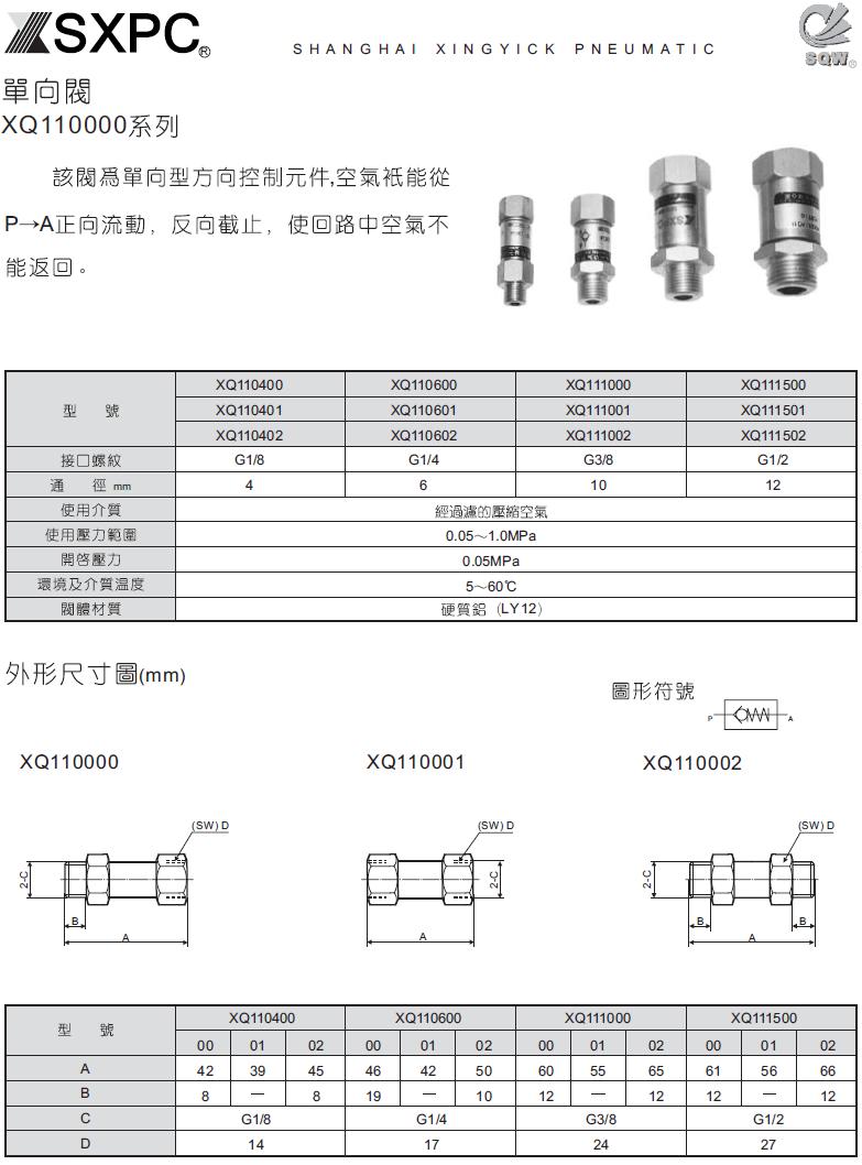 XQ110000系列 单向阀